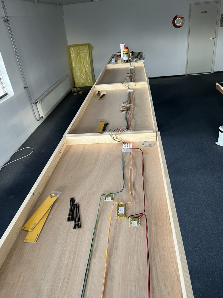 Van mijn vorige modelspoor baan (H0, Amerikaans) heb ik geleerd dat die niet de goede hoogte had. Deze was ongeveer een meter hoog, zodat ik bij het werken altijd met gebogen rug stond. De onderbouw was een (1) geheel. Ook het onder de baan werken vergde nogal wat gymnastiek.
